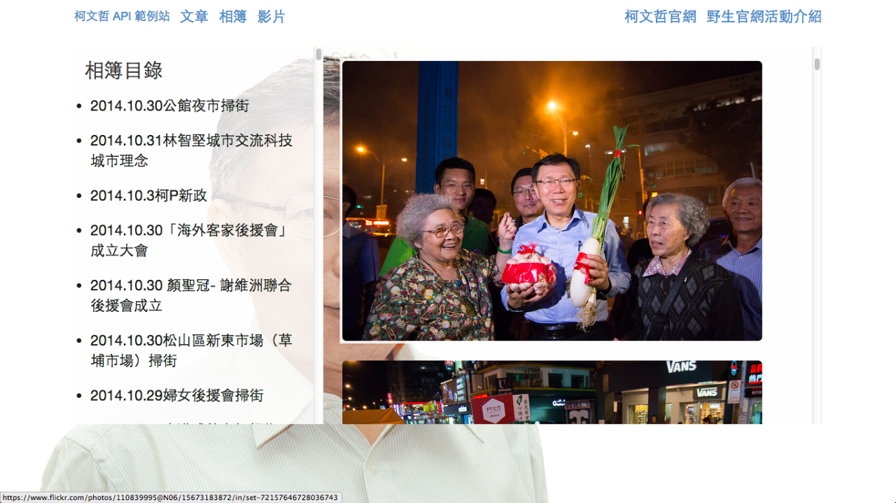 此作品由網友 唐宗浩 響應柯文哲陣營推出的「野生官網」活動,所設計的一款針對「長者」所設計的野生官網,放大了文字與圖片的大小,對於長者在閱讀時,更加友善。